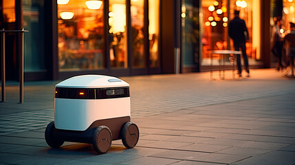Mobile robot delivering orders. Witness the rise of automation in the delivery process as the mobile robot flawlessly executes each task, redefining the industry with its efficiency and reliability.
