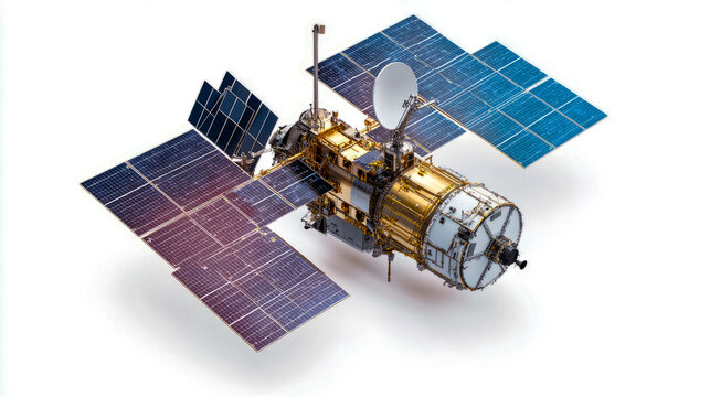 Detailed satellite model with solar panels and communication equipment