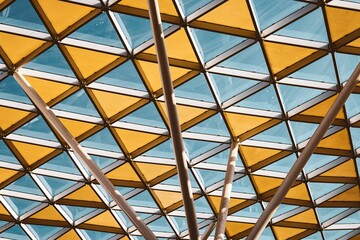 Clear and yellow glass ceiling of the building