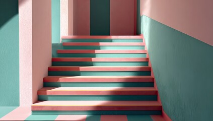 Abstract architectural detail featuring vertical textured concrete slabs in orange yellow blue and grey