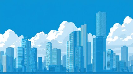 Pixelated Cityscape In Shades Of Blue Under Cloudy Sky Abstract Architectural Illustration