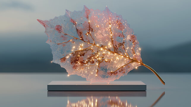 Clean glowing AI circuit leaf pattern technology nature fusion concept modern design generated AI
