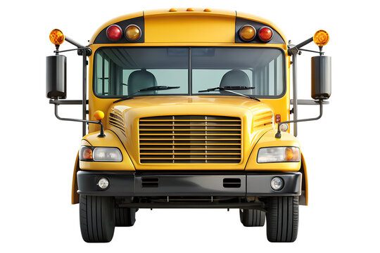 Front view of a classic yellow school bus on black background, school bus, yellow, transportation, vehicle, front view, automobile, education, safety, school, back to school, student, commuting