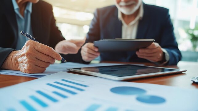 Elderly Couple Engages in Online Banking Service with Tablet