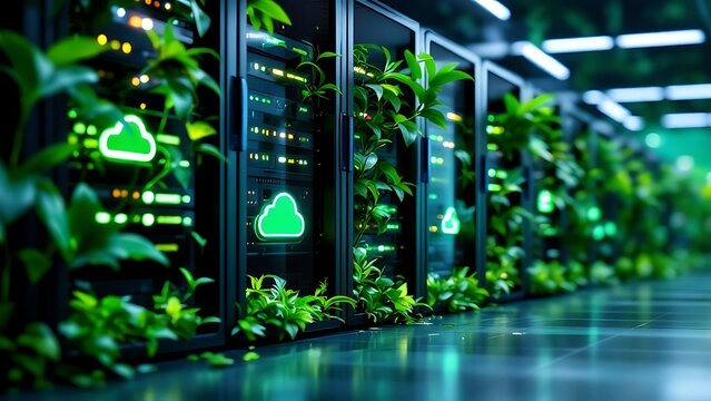 Cloud storage concept surrounded by server infrastructure showcasing modern technology in a data center environment