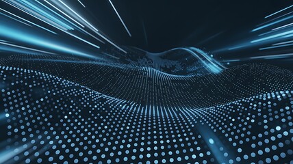 Abstract digital data representation of flowing information and network connections within a modern technological landscape