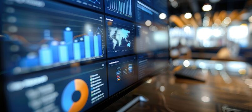 Modern Digital Dashboard With Interactive Data Visualization On Office Screen Images