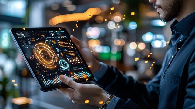 Innovative data analysis modern office digital interface tech environment close-up view data-driven insights for enhanced decision making