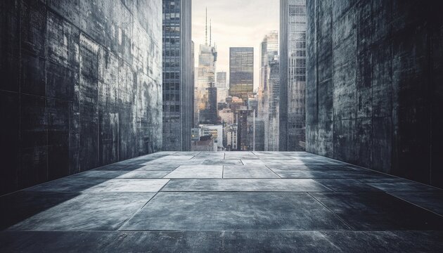 Urban Canyon - Towering Skyscrapers and Narrow City Street.