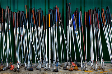 Row of Old Golf Clubs Sports