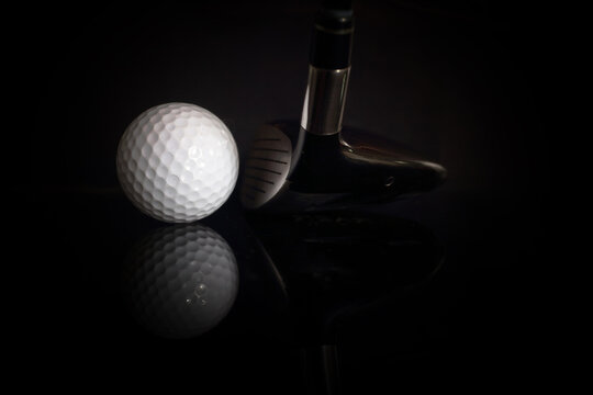 Golf balls and golf clubs to dark Background