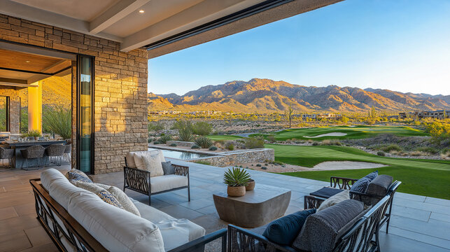 desert home patio overlooking a golf course