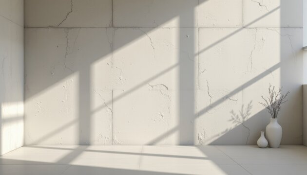 Minimalist tiled interior room with clean white wall and grey floor for modern branding or mockup design presentation concept template space.