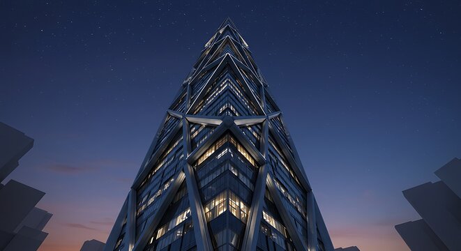 Modern Skyscraper Building at Dusk with Unique Architectural Design