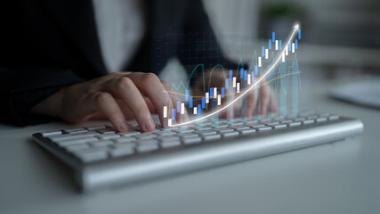 Digital financial data analytics in modern office background