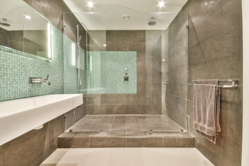 Sleek modern bathroom with walk-in shower and minimalist basin