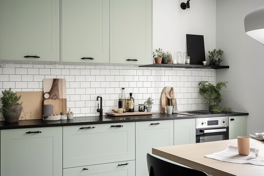 Minimalist Scandinavian Kitchen with Wood Accent, Ai Generative