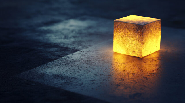 Glowing cube emitting vibrant light in a dark environment, symbolizing futuristic technology, digital innovation, and modern abstract visuals