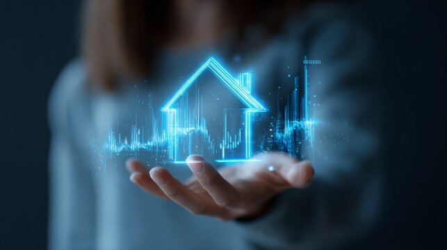 Futuristic financial data visualization on modern skyscraper