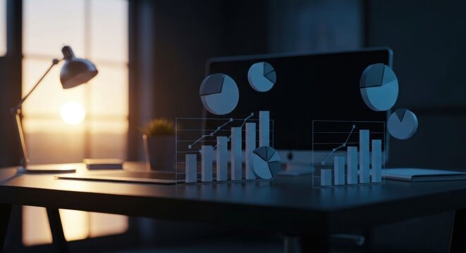 Colorful Bar Graph with Overlaying Lines in Modern Office Setting.