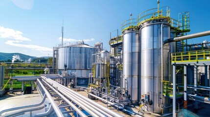 Industrial Plant with Large Cylindrical Storage Tanks and Pipes