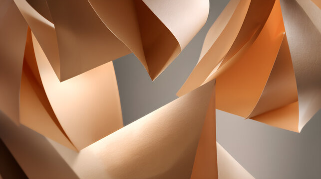 Radiating folded paper wall panel creating geometric origami sunburst with soft shadows