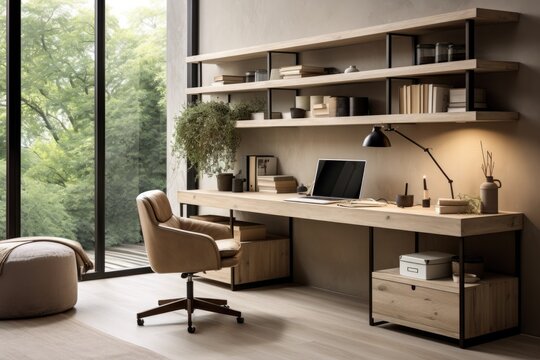 Medium shot of adjustable wooden modular shelves with blurred background highlighting flexibility for custom storage solutions in home or office spaces.