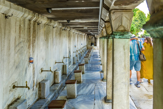 Istanbul, Turkey. Cranes for washing before prayer at the Blue Mosque
