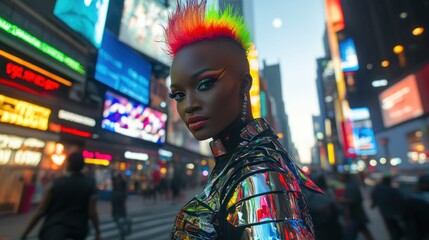Punk skull with spiked mohawk and piercings