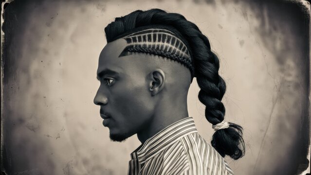 Stylish man with mohawk hairstyle on black background.