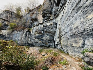 Indian Ladder trail, along the Helderberg Escarpment. Thacher State Park has world renown fossil-bearing formations and provides scenic vista mountain and valley views. Climb among rocks, caves, paths