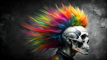 Skeleton in leather jacket with spiked mohawk
