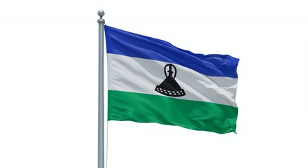 Lesotho's National Flag Waves Proudly Against a Crisp White Sky