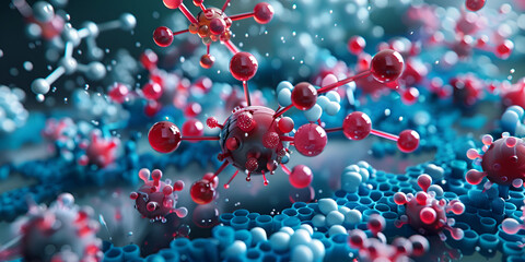 A digital representation of molecular structures, showcasing colorful atoms interconnected, highlighting the intricate world of chemistry and molecular science.