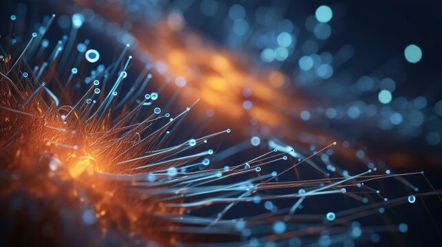Network structure chemical bonds in molecular level of lines and points, dots and connections.  AI generated image, ai