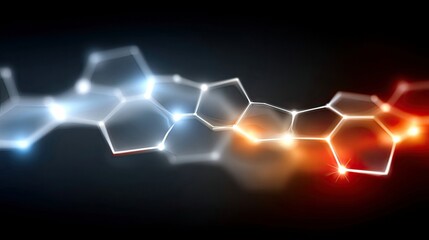 Close up of a blue hexagonal molecular structure with connecting lines and nodes in focus