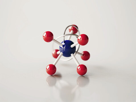 Electric blue atom surrounded by particles in macro photography , science, technology, abstract, chemistry, molecular
