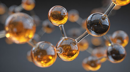 3d molecular model visualization with metallic spheres in scientific concept