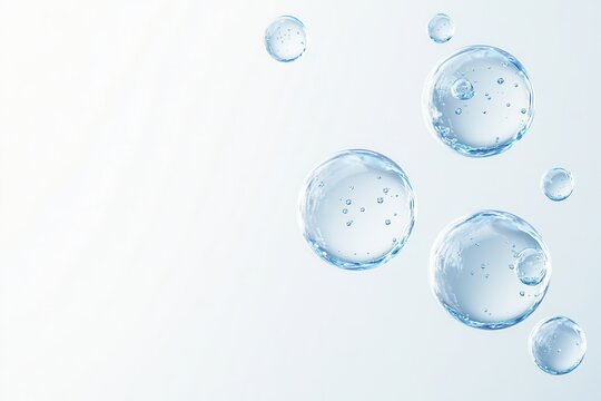 Close-up of three blue water molecule cells floating in the air, abstract background