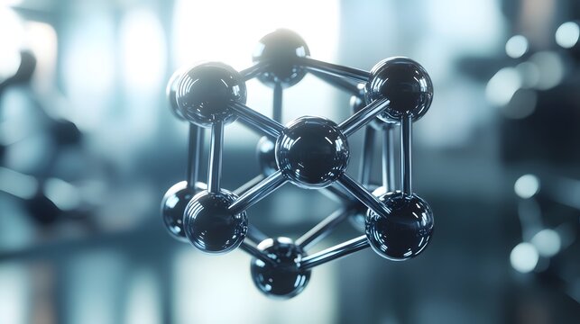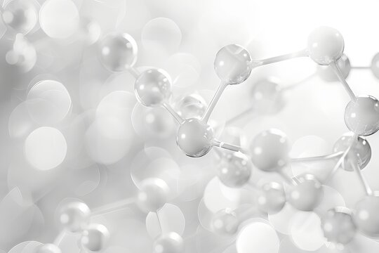 透明感のある分子構造を表現した白背景の科学的3Dイラスト