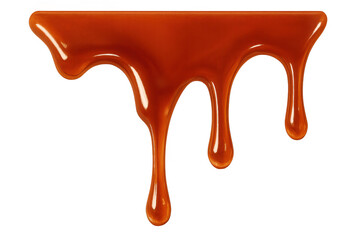 Caramel sauce dripping creating flowing shapes, sweet dessert syrup food topping, transparent background