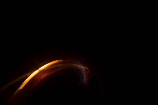 Long exposure captures orange sparks radiating from a vivid spiral against a dark night backdrop, with motion