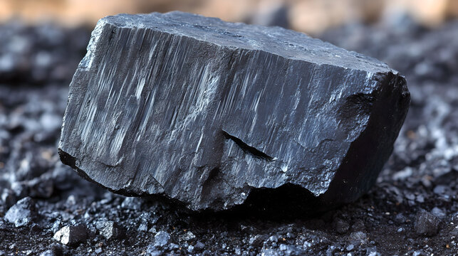 Raw molybdenum ore crystals on black shale with metallic reflections,showcasing strategic mineral resources and clean energy materials for industrial use.