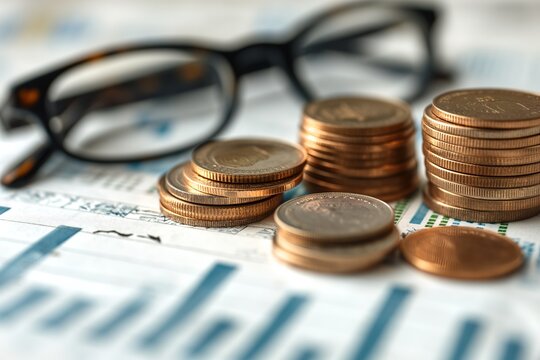 a graph representing financial trends and lines of coins, visually illustrating the intersection of data analysis and monetary transactions in the realm of finance and business.