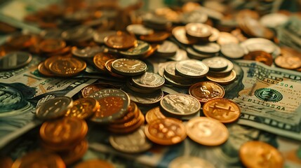 Pile of coins on an economic budget, monetary planning concept.