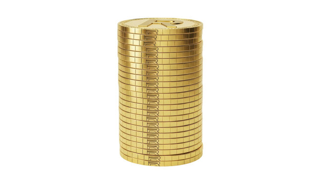Isolated tall stack of shiny metal coins, financial success, investment concept, money savings