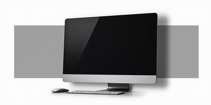desktop computer monitor with a blank white screen on a wooden desk. The monitor is placed in the center of the desk and is facing towards the right side of the image.