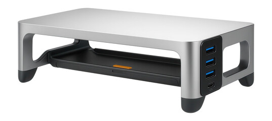 Photorealistic image of a ceramic monitor riser with auto shut-off on a white background