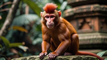 The toque macaque is a reddish-brown Old World monkey species, known for its distinctive whorl of hair on the head and playful behavior, native to the forests of Sri Lanka.