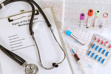 Blood sample with Monkeypox smallpox syndrome infection blood test in check-up analysis laboratory